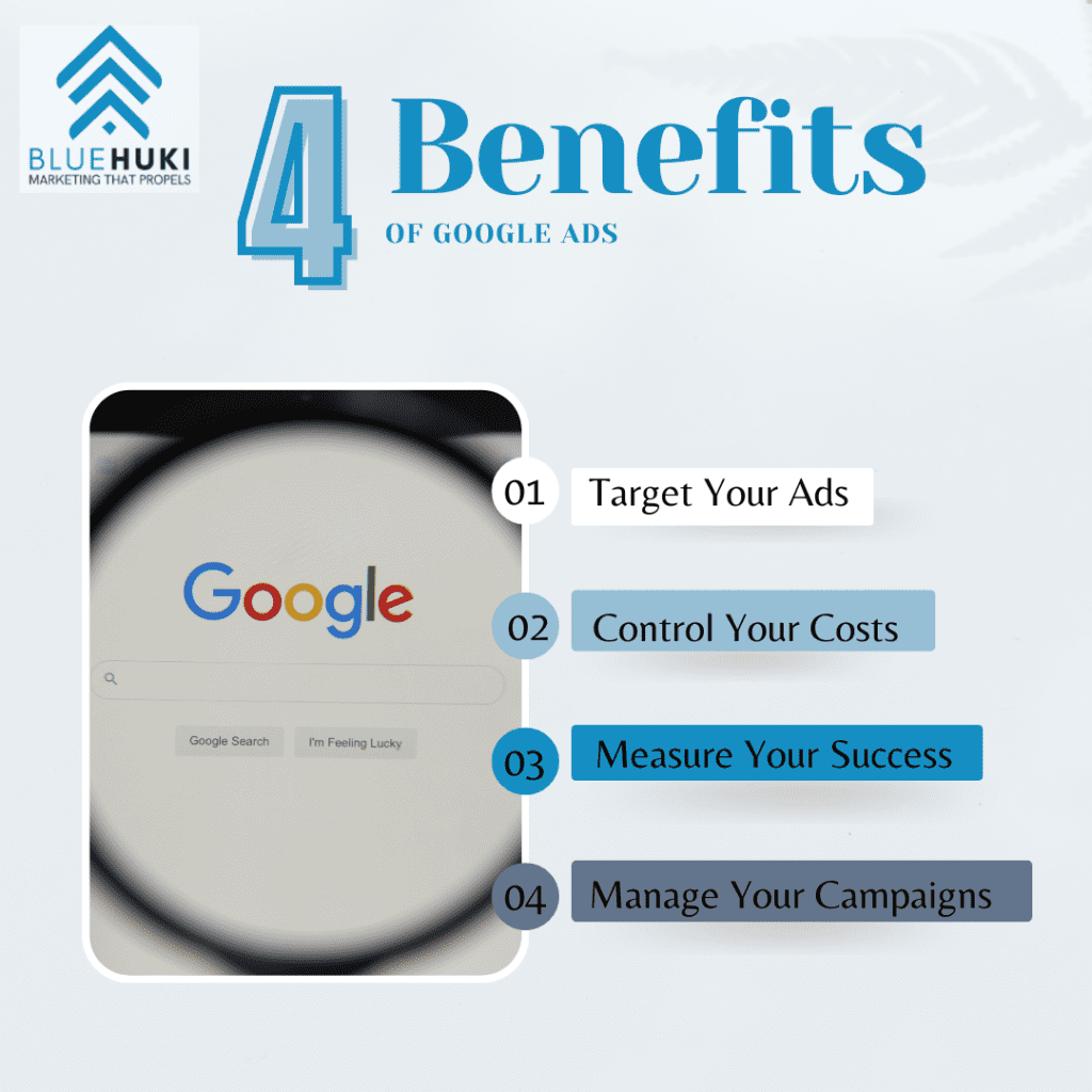 Now that we’ve talked about Social Media Ads, let’s talk Google Ads. Take a look at the graphic below to check out the many benefits: