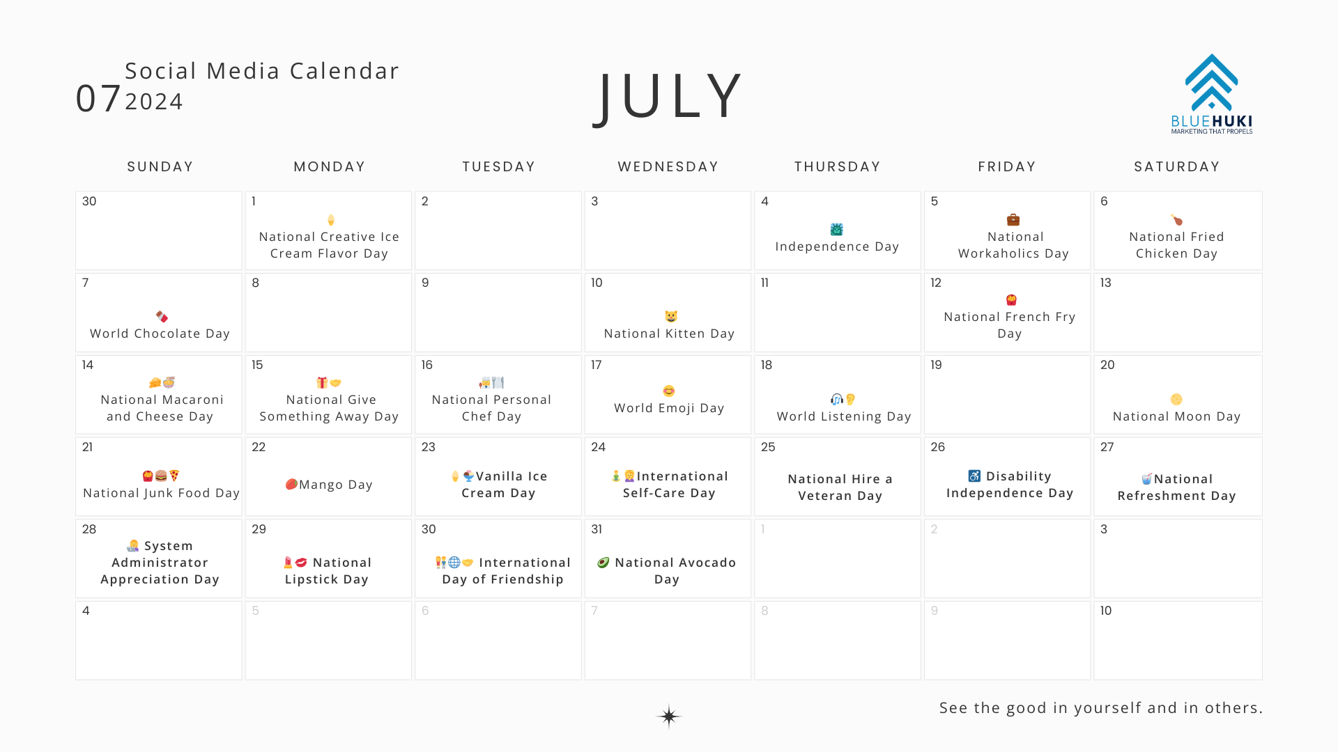 📅 July 2024 Social Media Marketing Calendar 🚀