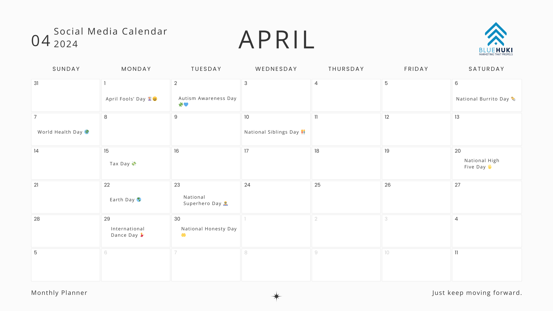 A strategic calendar is not a schedule. It helps you understand your audience and align your content with their needs. It also maximizes your social media efforts. Get ready for a great social media journey in April. Plan your path and get your calendar.