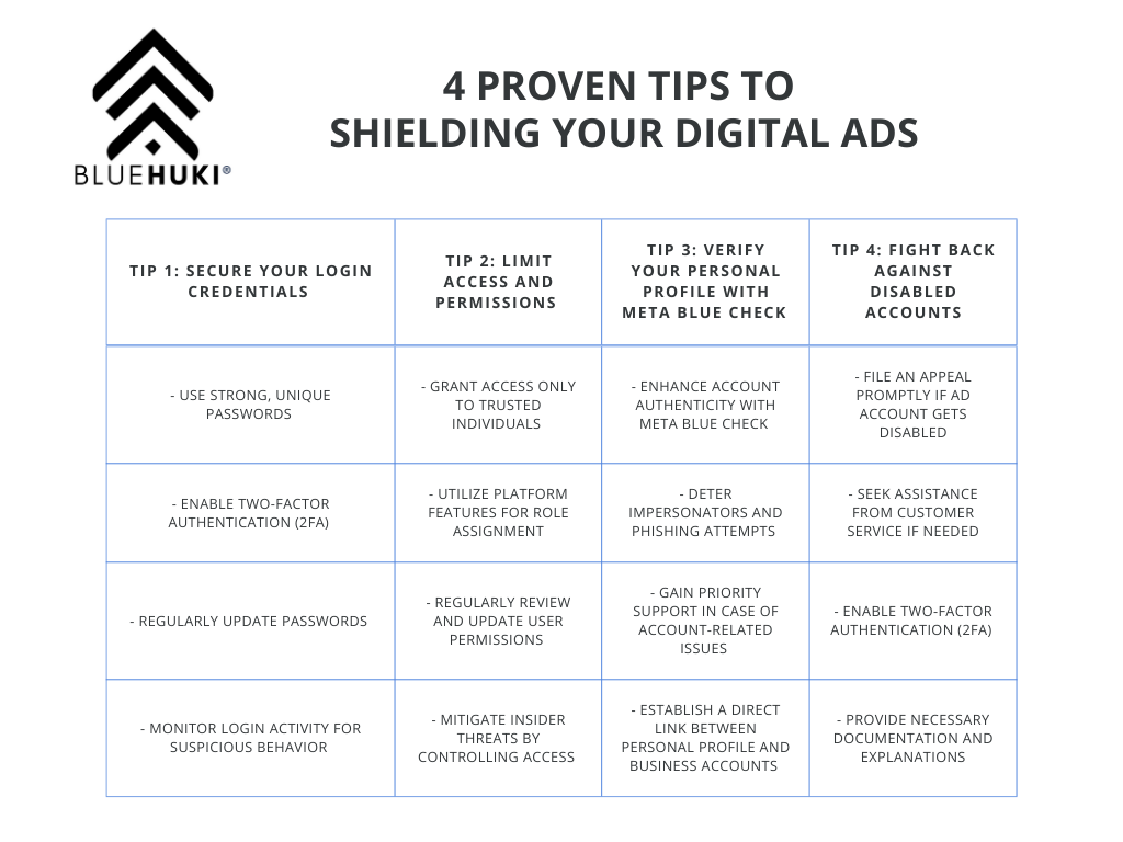 At BlueHuki, we get how crucial it is to safeguard your business manager and ad accounts. Our crew of digital marketing gurus specializes in crafting tailor-made strategies to help you reach your marketing goals while keeping your online assets safe. From social media and Google ads to pay per click, display, native, and retargeting campaigns, we’ve got you covered.
