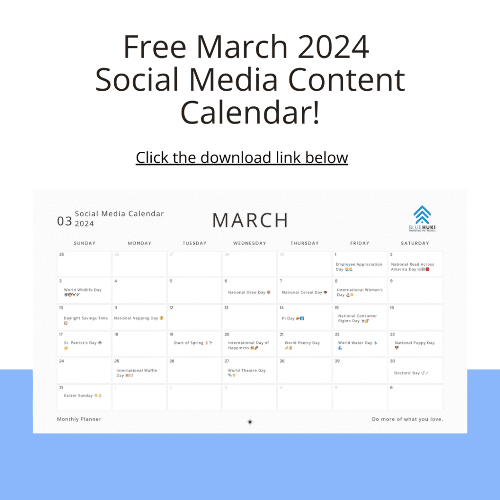 Ready to seize the opportunities of March 2024? We’ve prepared a free social media content calendar to guide your journey. Download it now and get a head start on a month filled with possibilities.