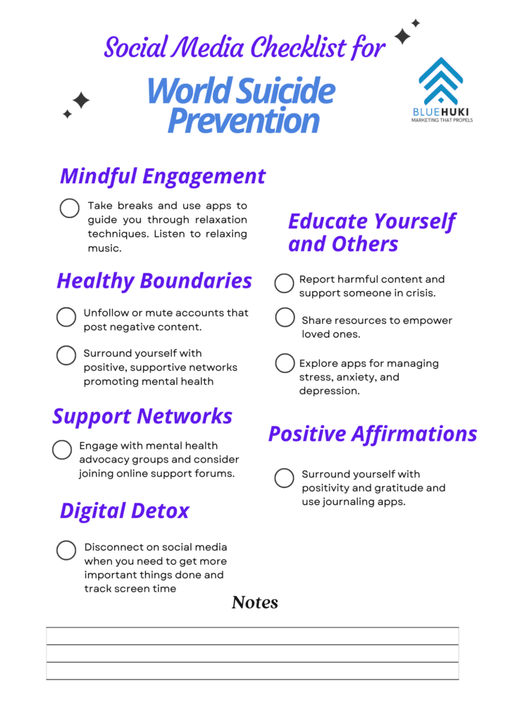 In today’s digital age, staying safe online extends far beyond protecting your personal information. It’s also about safeguarding your mental health and well-being. As we approach World Suicide Prevention Day on September 10th, let us raise awareness and equip ourselves with the tools to navigate social media responsibly. Here’s a comprehensive checklist to help you foster a safer online environment for yourself and others: